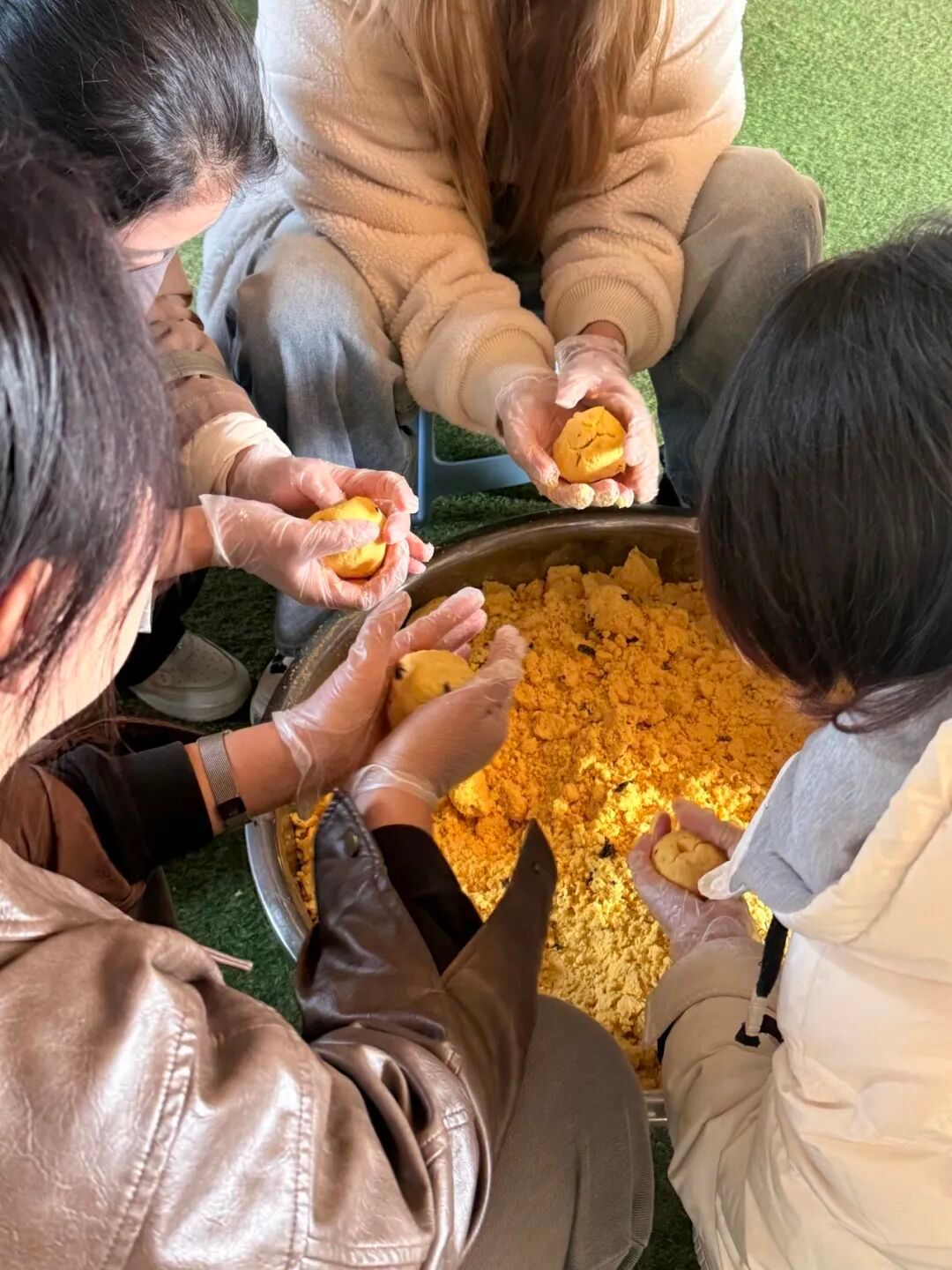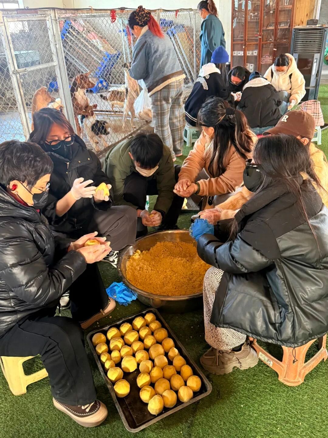 活动中,志愿者们分工协作,拌料、塑形、蒸制,各司其职。尽管许多人是初次尝试,但大家积极学习、互帮互助,逐渐熟练起来。每一枚窝头,都包裹着志愿者的细腻心思与真挚关爱。活动现场始终洋溢着幸福与欢笑,彼此分享着与小动物相关的故事,让温暖在指尖和言语间无声流淌。
