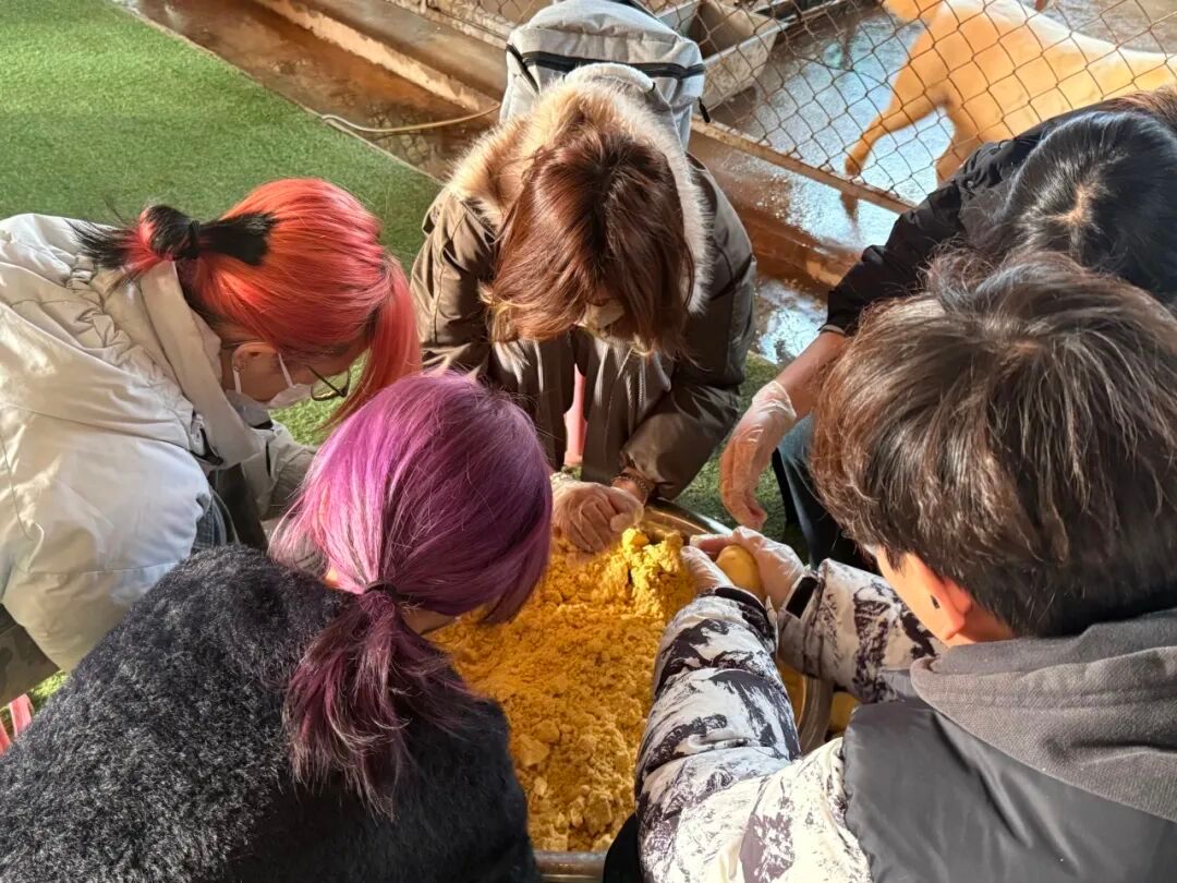 正午时分,志愿者们准时集结,怀揣着对小动物的关怀,一同前往天津市小动物保护基地。天气虽寒,但热情不减,途中大家悉心探讨如何让窝头更加营养、更贴合小动物的需要。抵达基地后,团队迅速熟悉环境,有序展开准备工作。