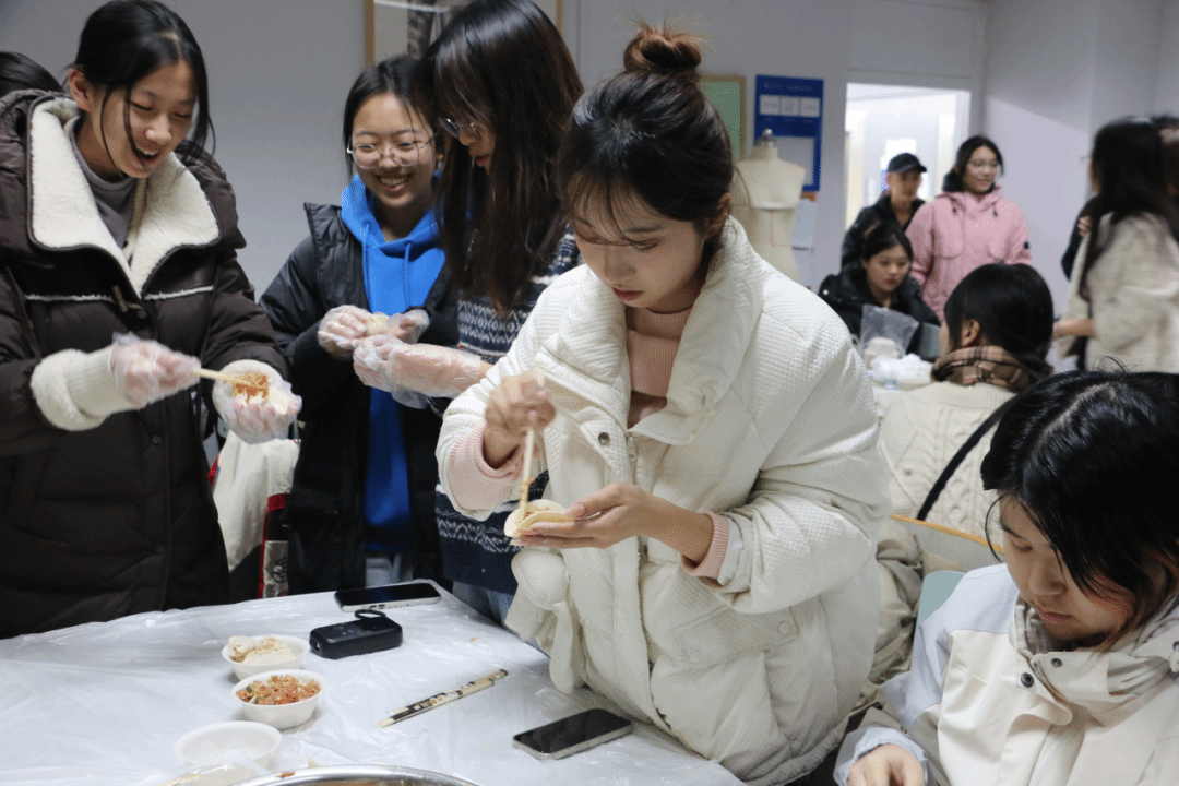 2025年12月19日下午,天津美术学院设计艺术学院“擀开冬日寒意,包入满心温情”冬至包饺子活动暖心开启。全体同学们齐聚一堂,以面团为媒、以馅料为情,在欢声笑语中解锁冬日限定温暖,让校园里的冬至充满家的味道。