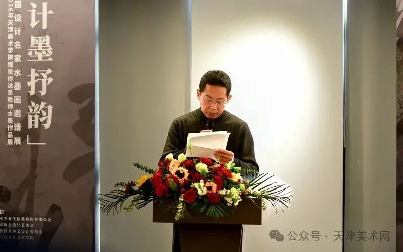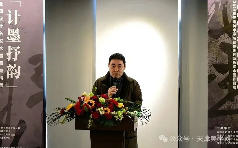天津美术网讯 2025年的最后一天,“计墨抒韵”——全国设计名家水墨邀请展暨2026年天津美术学院视觉传达系教师水墨作品展开幕式在品所艺术中心隆重举行。