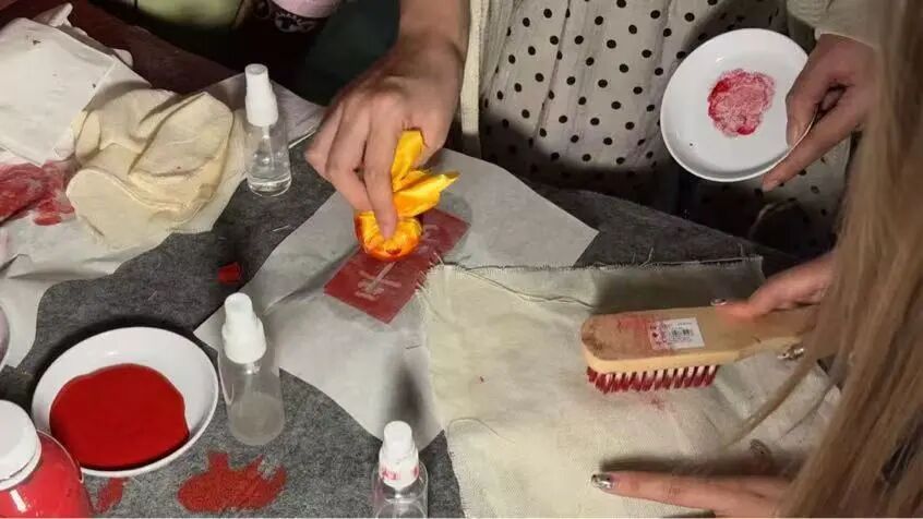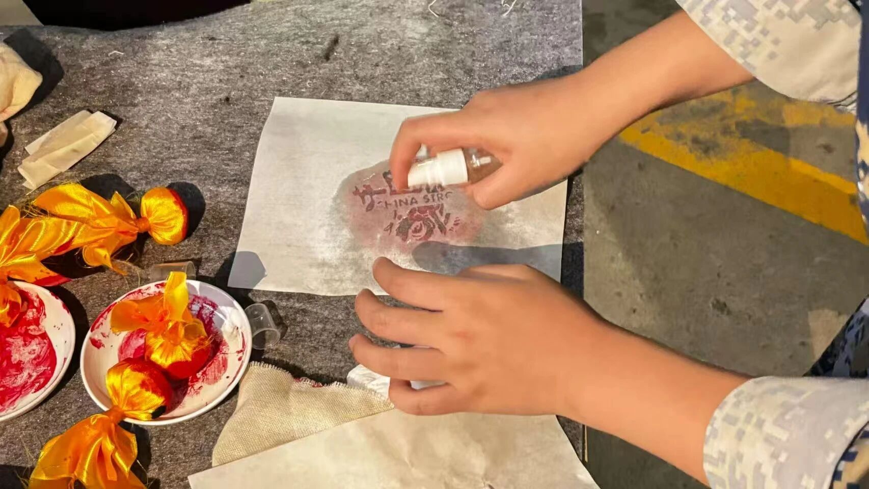 拓印生辉迎华诞:在工作人员的指导下,大家清理拓板、润湿宣纸、轻敲墨汁、均匀拓印。当一张张带着古朴纹理的拓片完成时, 仿佛触摸到了传统文化的脉搏,更对祖国历史文化的厚重有了真切感知。