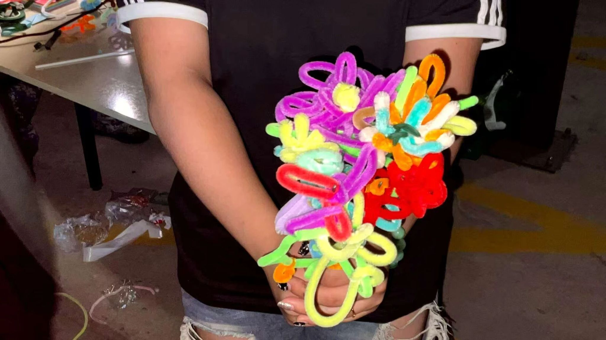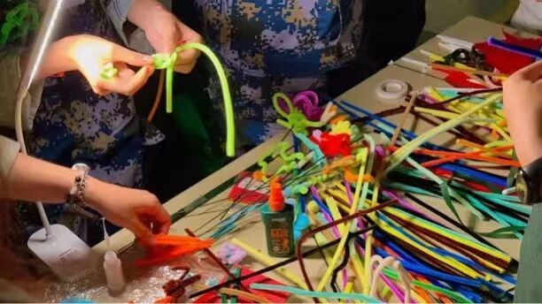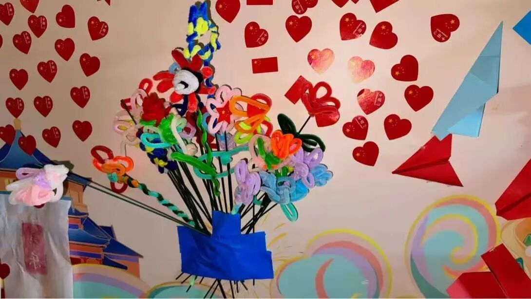 同学们挑选五彩扭扭棒,或创作娇艳花朵,或打造绚烂烟花,还搭配彩纸、贴画进行创意延伸。一件件充满巧思的手工作品,是大家对祖国华诞最童真的献礼。